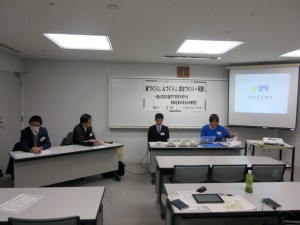 左から室長・坂本さん、座長・リグレッタ八木、報告者・佃さん、サポーター・岡さん・・・